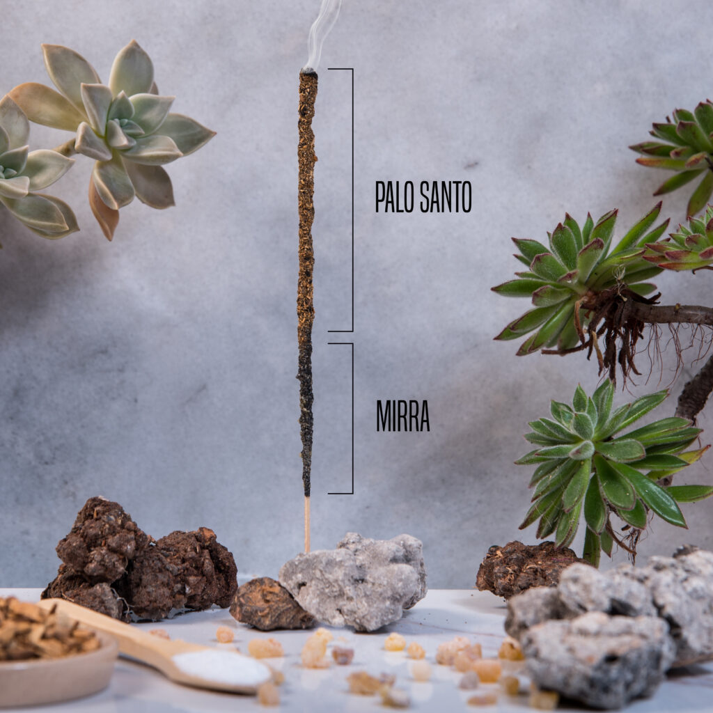 Composición: puede contener olíbano, mirra, copal, yagra, ruda, champa, sándalo, romero y palo santo.